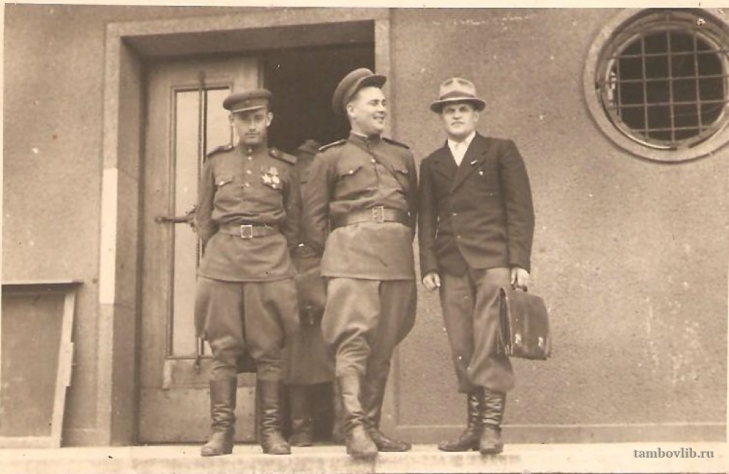Родился 30 марта 1912 г. в с. Осино-Лозовка Сампурского района Тамбовской области. С 1942 г. по 1944 г. был на Волховском, Ленинградском и Прибалтийском фронтах командиром взвода снабжения. Награжден орденом «Красной звезды», орденом «Отечественной войны I степени», медалью «За Отвагу», медалью «За освобождение Варшавы», медалью «За освобождение Германии в ВОВ в 1941-1945 гг.». Умер в 1982 г. На фото в центре.Добавлена 20 Марта 2015