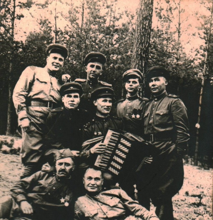 Родился 30 марта 1912 г. в с. Осино-Лозовка Сампурского района Тамбовской области. С 1942 г. по 1944 г. был на Волховском, Ленинградском и Прибалтийском фронтах командиром взвода снабжения. Награжден орденом «Красной звезды», орденом «Отечественной войны I степени», медалью «За Отвагу», медалью «За освобождение Варшавы», медалью «За освобождение Германии в ВОВ в 1941-1945 гг.». Умер в 1982 г. На фото третий ряд крайний слева.Добавлена 20 Марта 2015