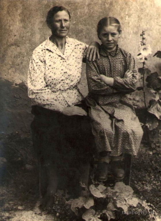 Агапова Вера Федоровна (1913 - 1984) с дочерью Зинаидой. Жительницы с. Моршань-Ляда Инжавинского района. Фотография предоставлена Ямщиковой Валентиной Степановной.