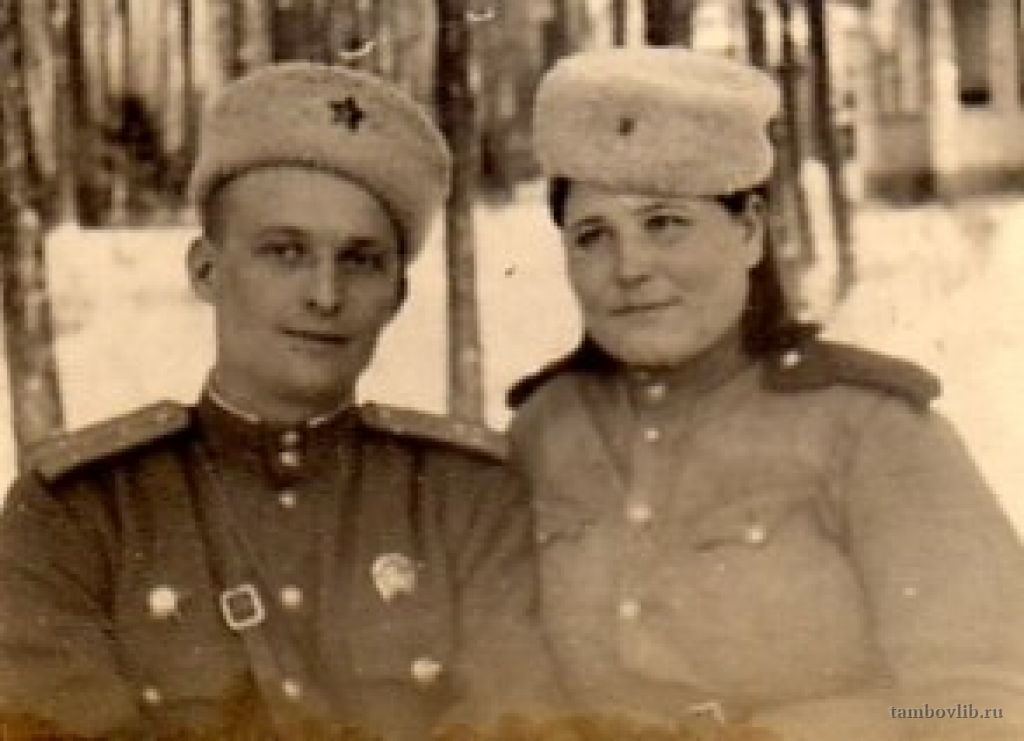 Блинов Иван Васильевич, капитан, 1917 г.р. Призван в 1941 г., на фронте с февраля 1942 г. В составе четырех фронтов пришлось воевать И.В. Блинову. Войну начинал рядовым стрелком, а закончил командиром роты. Участвовал в боях под Ржевом, Ригой, освобождал Орел, всю Европу прошел. Восемь боевых медалей, орден Красной Звезды, орден Отечественной войны второй степени к победному 1945 году украшала грудь Блинова. Умер в 1993 г., с. Бондари. Мария Максимовна Блинова (Шитова), санинструктор. Пройдя курс молодого бойца Мария шла по военным дорогам городов Калинина, Москвы. Сначала была санитаркой, потом санинструктором. В 1943 г. ухаживала за раненым капитаном Блиновым. Им вместе посчастливилось встретить Победу. Потом они решил связать свою судьбу вместе, воспитали двух сыновей.1945 Бондарская межпоселенческая библиотека Семейное