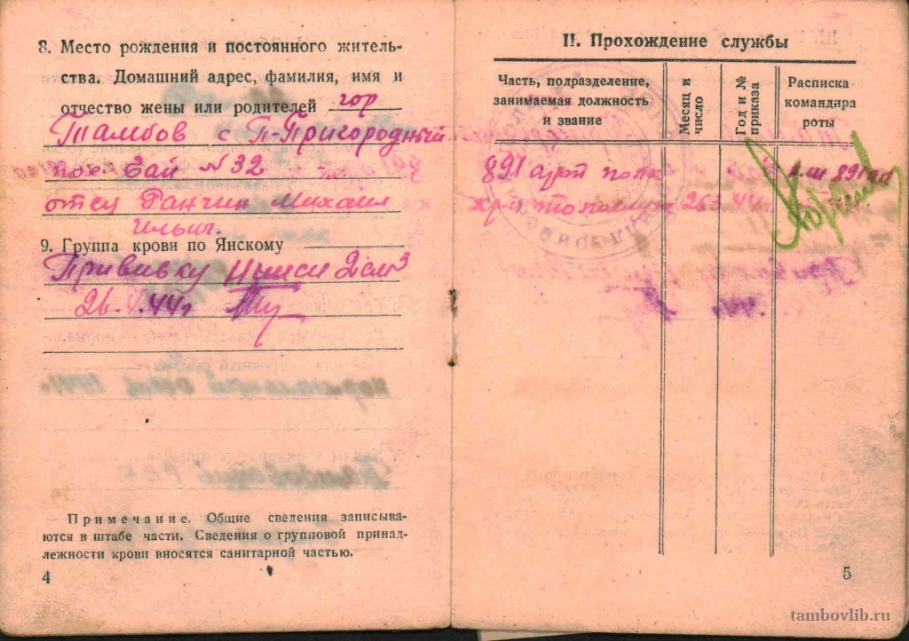 Родился 22 мая 1923 г. в с. П-Пригородное Тамбовского района Тамбовской области. Красноармеец. Проходил службу в составе 4 уд. Армии 891 артиллерийского полка. Принимал участие в боях Центрального фронта, 1-го Прибалтийского фронта. В августе 1944 г. был ранен. Уволен по ранению. Награждён орденом «Красной звезды», орденом «Отечественной Войны 1 степени», медалью «За победу над Германией в ВОВ 1941-1945 гг.», медалью «Жукова», знаком «Фронтовик 1941-1945 гг.». Умер 27.10.2012 г. На фото Красноармейская книжка.Добавлена 21 Марта 2015