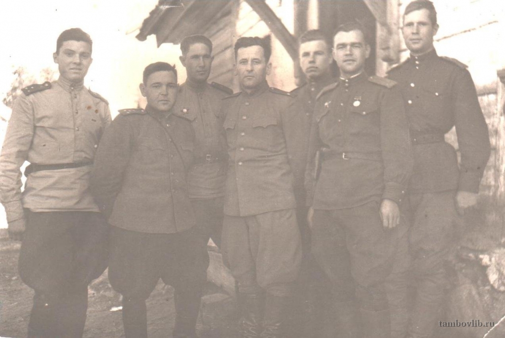 Комсорги полков(Решенин П. третий слева)1944, сентябрь Гавриловская районная библиотека Военные действия Осовец-Крепость, Польша