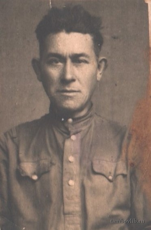 Родился 27 июля 1905 года. На фронт призван 25 июня 1941 года. Демобилизовался 24 октября 1946 года.1950 Межпоселенческая центральная библиотека Сосновского района Портрет