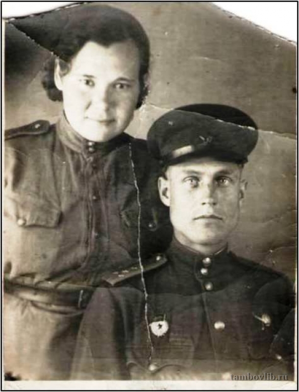 На фото Рыжанов Григорий Гаврилович (1916-1985) и Рыжанова Наталья Николаевна (1920-1995). Они познакомились в госпитале, куда Григорий Гаврилович попал после тяжелого ранения, а Наталья Николаевна была медсестрой. Поженились во время Великой Отечественной войны. Григорий Гаврилович служил в разведке. Проявляя исключительную смелость, несмотря на сильный огонь пулеметов и винтовок противника, взвод т. Рыжанова сумел выбить немцев с их позиций. Григорий Гаврилович неоднократно ходил в тыл противника в засаду, в ночной поиск, организовал подрыв дороги в тылу противника. За это он был награжден Орденом Красной Звезды. За умелую и четкую работу в организации подготовки разведывательных подразделений частей и соединений, самоотверженный труд в 1944 г. был награжден Орденом Отечественной войны I степени.1943 ЦБС города Моршанска Семейное