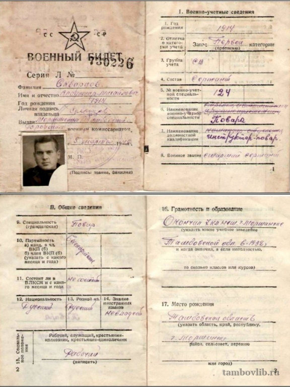 Скворцов Владимир Михайлович (1914-1988), уроженец г. Моршанска. Был призван в армию в 1941 г., демобилизован в 1945 г. Старший сержант.