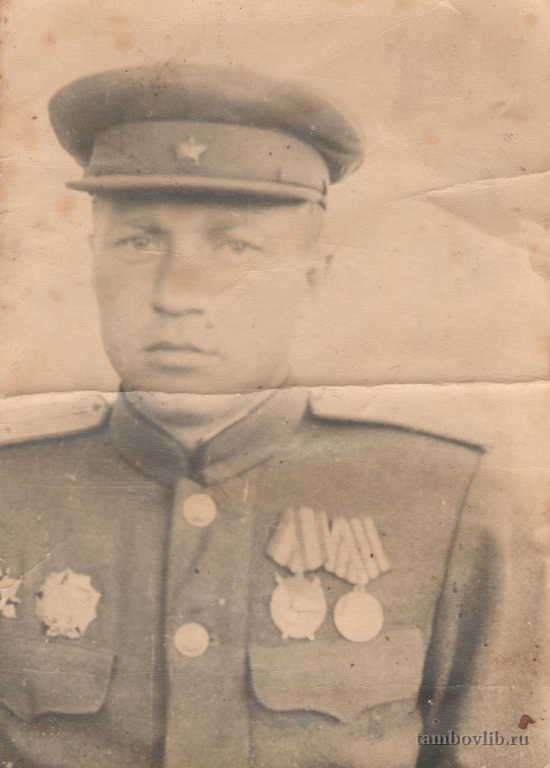 Киселев Алексей Михайлович, 1900 г. р. уроженец с. Лукино Ржаксинского района. Призван в армию в 1941 г, демобилизован в 1945 г. Капитан. Умер в 1979 г.30 июня 1945 Межпоселенческая центральная библиотека Ржаксинского района Портрет