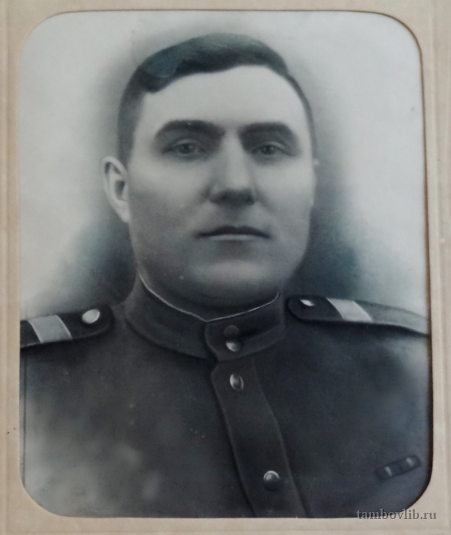 Родился 7 января 1909 г. в с. Бокино Тамбовского района Воронежской (в настоящее время Тамбовской) области. Воевал с 1941 по 1945 гг. Был ранен в ногу, находился на лечении в Грузии в санатории. После лечения был отправлен на фронт, где работал шофером. Вернулся с фронта осенью 1945 г. Умер 25 апреля 1979 г.1954 ТОУНБ Портрет Бокино, Тамбовская область, Россия