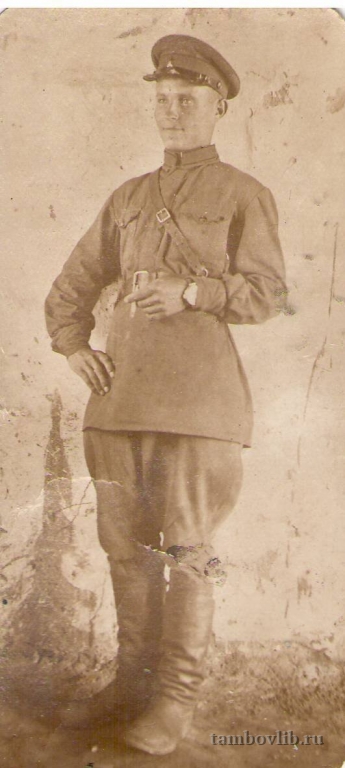 Работал в Москве, оттуда его забирают в армию, служил на Дальнем Востоке, станция Даурия. Когда началась война забирают на фронт, эшелон в котором он ехал, попадает под бомбежку и он погибает.25 августа 1940 Центральная библиотека Мучкапского района Портрет
