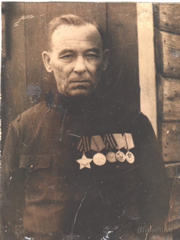 Родился в 1908 году, Пензенская область, Салтыковский район, с. Лебедянка. Работал учителем в Отъясской средней школе Сосновского района. Прошел путь от Ржева до Будапешта. Награжден орденом "Славы" и другими медалями.Межпоселенческая центральная библиотека Сосновского района Портрет