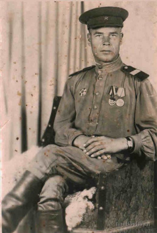 Родился в 1909 г. с. Кариан Знаменского района Тамбовской области. Демобилизован в 1945 г., рядовой. Шофер 3-го класса. Награждён орденом «Красной Звезды», орденом «Славы», орденом «Отечественной войны II степени», медалью «За Отвагу», медалью «За боевые заслуги», медалью «За Победу над Германией в ВОВ 1941-1945 гг.». В ознаменование 40-летия Победы в ВОВ награждён орденом «Отечественной войны II степени».25 сентября 1945 ТОУНБ Портрет