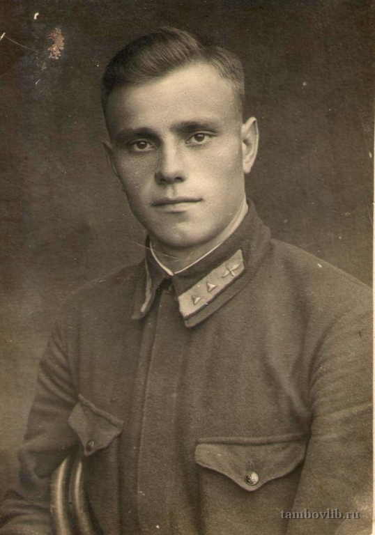 Воронков Константин Тимофеевич - участник Великой Отечественной войны. Призван в армию в 1940 году, демобилизован в 1946 году. Лейтенант. За период войны совершил 229 успешных боевых вылетов на Ленинградском, III Прибалтийском и II Прибалтийском фронтах. При выполнении боевых заданий проявил себя смелым, решительным и настойчивым штурманом. Имел большой боевой опыт, летал в сложных метеоусловиях. Награжден орденом Красной Звезды и Отечественной войны II степени. После демобилизации Константин Тимофеевич жил в р. п. Инжавино, работал в управлении сельского хозяйства, секретарем партийной организации в совхозе "Инжавинский". Фотография из семейного архива сына Воронкова Юрия Константиновича.1942 Межпоселенческая центральная библиотека Инжавинского района Портрет