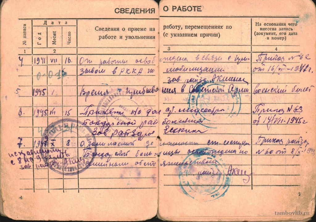 Родилась 7 апреля 1918 г. в с. Бондари Бондарского района Тамбовской области. В 1932 г. с отличием окончила Тамбовскую фельдшерско-акушерскую школу. Великая Отечественная война началась для Раисы Ивановны в 1941 г. с эвакогоспиталя в Москве. Затем была старшей операционной сестрой в армейском полевом подвижном госпитале I Гвардейской армии 4 Украинского фронта. Победу встретила в Польше в звании младшего лейтенанта медицинской службы. Награждена орденами «Красной звезды» и «Отечественной войны II степени», медалью «За победу над Германией». С 1945 г. и до выхода на пенсию трудилась старшей медсестрой в Бондарской больнице. Ветеран труда. Отличник здравоохранения. На фото трудовая книжка.