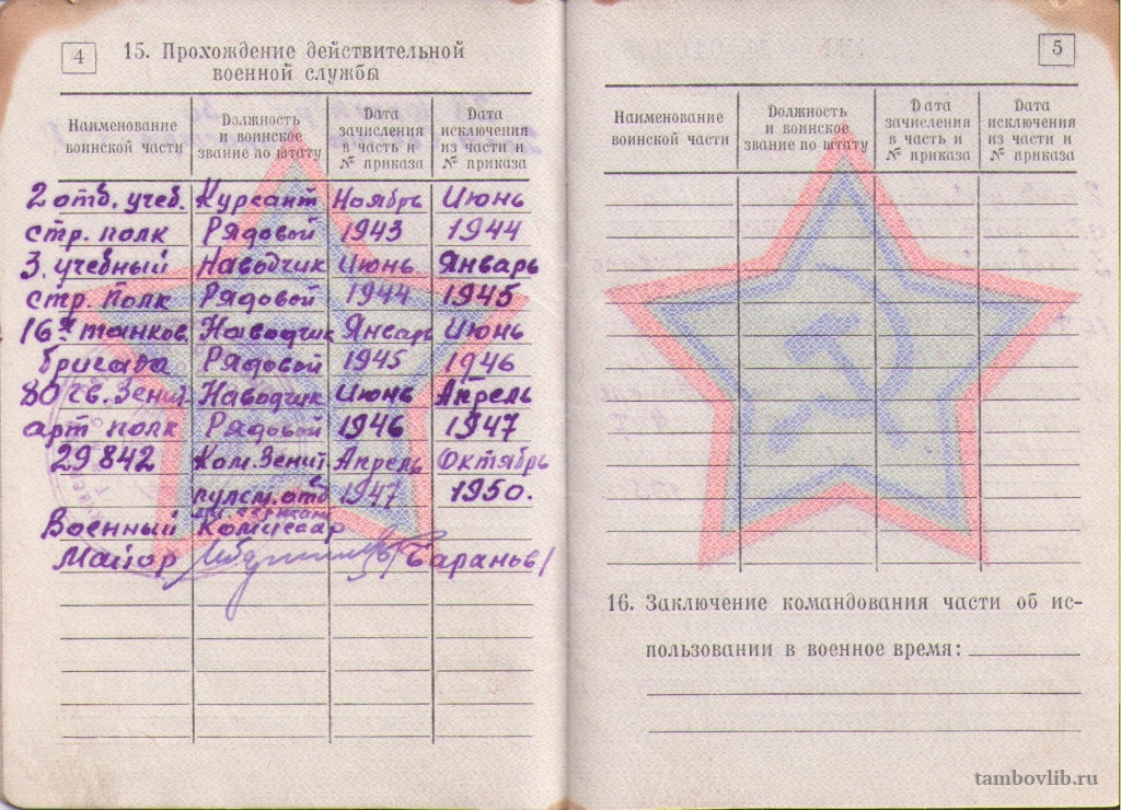 Военный билет Захарова Николая Михайловича, участника Великой Отечественной войны.