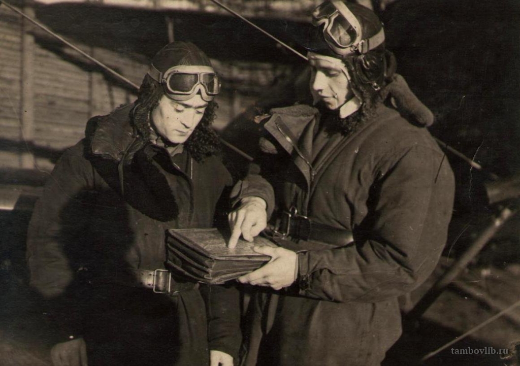Воронков Константин Тимофеевич (29.02.1920 - 28.04.1975) - участник Великой Отечественной войны. Призван в армию в 1940 году, демобилизован в 1946 году. Лейтенант. За период войны совершил 229 успешных боевых вылетов на Ленинградском, III Прибалтийском и II Прибалтийском фронтах. При выполнении боевых заданий проявил себя смелым, решительным и настойчивым штурманом. Имел большой боевой опыт, летал в сложных метеоусловиях. Награжден орденом Красной Звезды и Отечественной войны I степени. После демобилизации Константин Тимофеевич жил в р. п. Инжавино, работал в управлении сельского хозяйства, секретарем партийной организации в совхозе "Инжавинский". На снимке штурман Воронков и летчик Козлов. Фотография из семейного архива сына Воронкова Юрия Константиновича.Межпоселенческая центральная библиотека Инжавинского района Военные действия