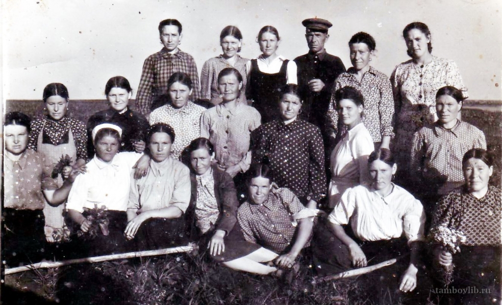Жители с. Марьевка Инжавинского района во время проведения полевых работ. Фотография предоставлена библиотекарем с. Марьевка Зарецкой Любовью Алексеевной.1950 Межпоселенческая центральная библиотека Инжавинского района Портрет с. Марьевка Инжавинского района