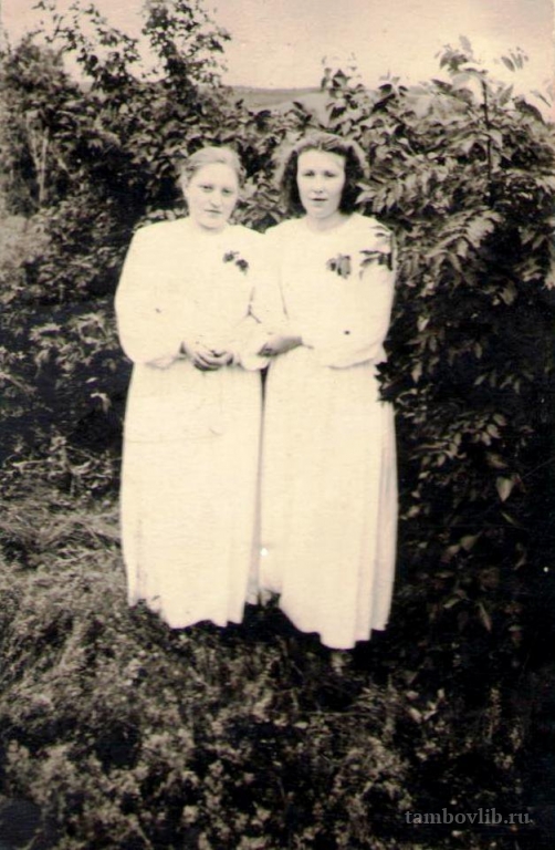 Участницы художественной самодеятельности Инжавинского Дома культуры: справа - Анна Перепелкина (Климонова). Фтография предоставлена дочерью Козиной Ириной Николаевной.1950 Межпоселенческая центральная библиотека Инжавинского района Портрет с. Инжавино