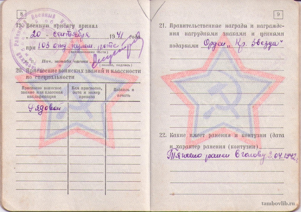 Военный билет Кожевникова Михаила Петровича,с. Свиньино