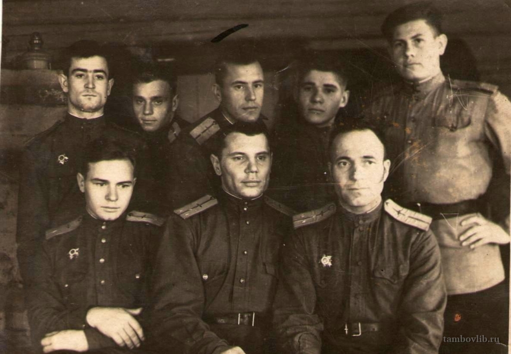 Воронков Константин Тимофеевич (1920 - 1975) - участник Великой Отечественной войны. Призван в армию в 1940 году, демобилизован в 1946 году. Лейтенант. За период войны совершил 229 успешных боевых вылетов на Ленинградском, III Прибалтийском и II Прибалтийском фронтах. При выполнении боевых заданий проявил себя смелым, решительным и настойчивым штурманом. Имел большой боевой опыт, летал в сложных метеоусловиях. Награжден орденом Красной Звезды и Отечественной войны II степени. После демобилизации Константин Тимофеевич жил в р. п. Инжавино, работал в управлении сельского хозяйства, секретарем партийной организации в совхозе "Инжавинский". Фотография из семейного архива сына Воронкова Юрия Константиновича.1943, октябрь Межпоселенческая центральная библиотека Инжавинского района Портрет