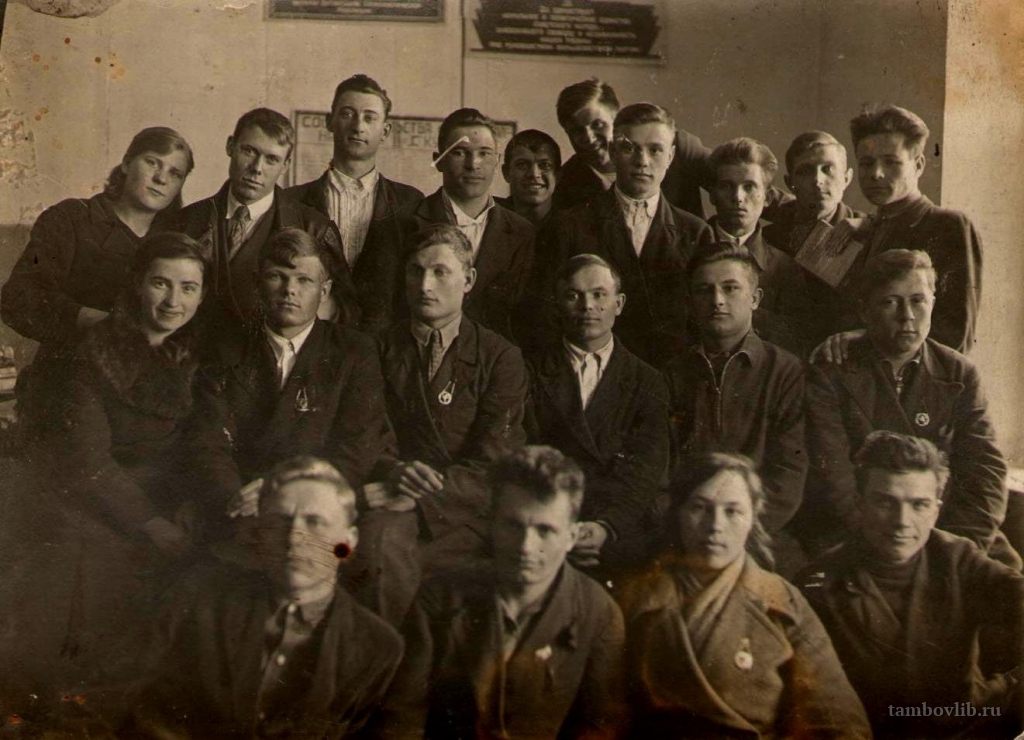 Воронков Константин Тимофеевич (в четвертом ряду четвертый справа). Снимок сделан во время учебы на рабфаке. Участник Великой Отечественной войны. Призван в армию в 1940 году, демобилизован в 1946 году. Лейтенант. За период войны совершил 229 успешных боевых вылетов на Ленинградском, III Прибалтийском и II Прибалтийском фронтах. При выполнении боевых заданий проявил себя смелым, решительным и настойчивым штурманом. Имел большой боевой опыт, летал в сложных метеоусловиях. Награжден орденом Красной Звезды и Отечественной войны II степени. После демобилизации Константин Тимофеевич жил в р. п. Инжавино, работал в управлении сельского хозяйства, секретарем партийной организации в совхозе "Инжавинский". Фотография из семейного архива сына Воронкова Юрия Константиновича.02 апреля 1939 Межпоселенческая центральная библиотека Инжавинского района Портрет