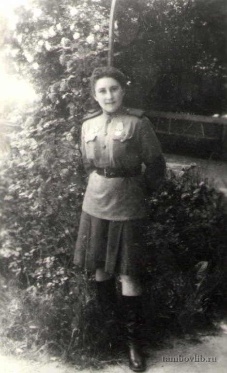 Участница Великой Отечественной войны. Родилась в 1923 году в с. Инжавино, закончила Инжавинскую среднюю школу. В настоящее время живет в Крыму. Фотографию предоставлена жителем р. п. Инжавино Воронковым Юрием Константиновичем.Межпоселенческая центральная библиотека Инжавинского района Портрет