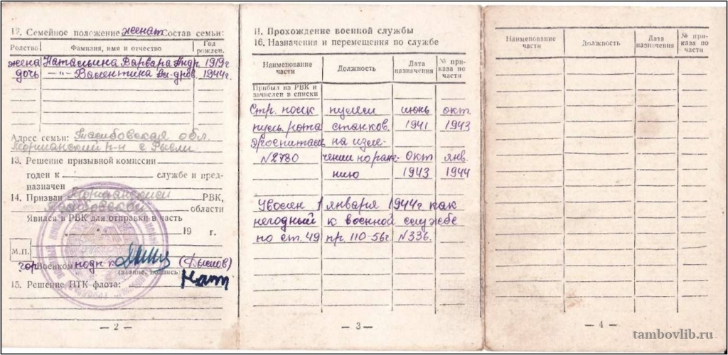 Учетно-послужная карточка Натальина Александра Сергеевича (1915-1981)