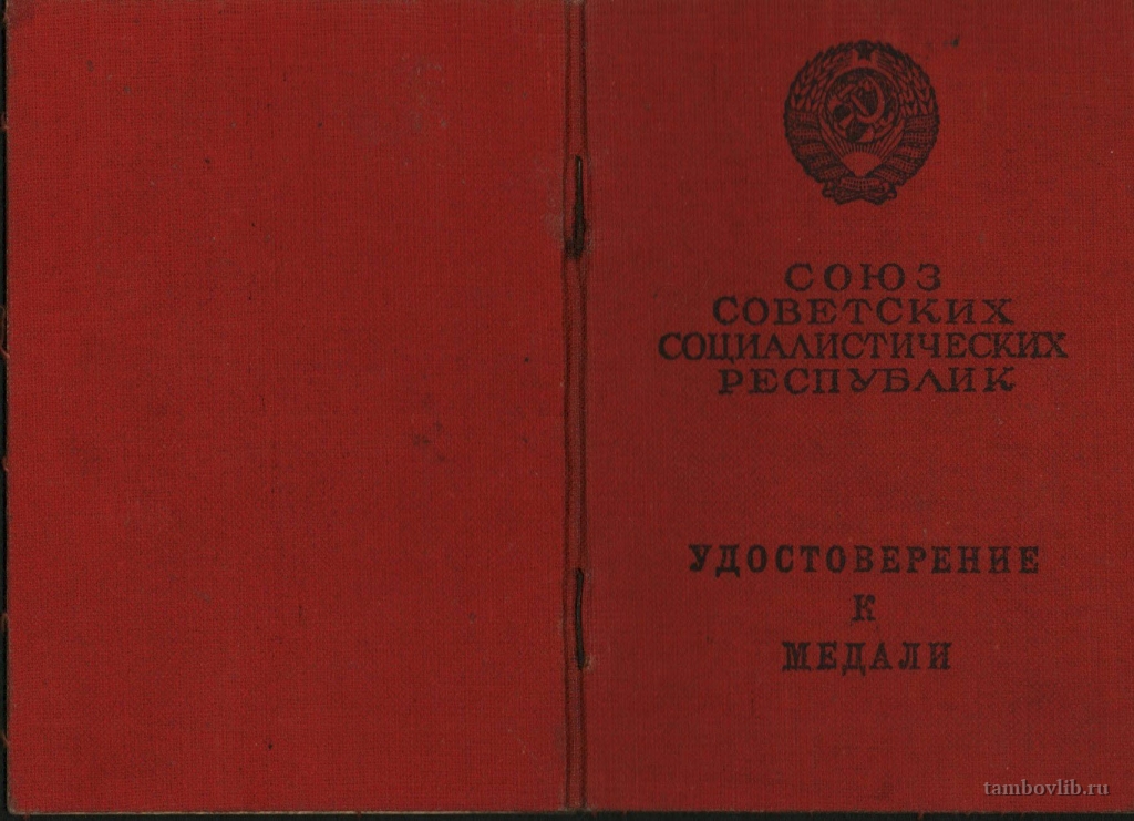 Удостоверение к медали Ганьшина Михаила Ивановича