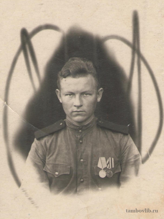 Участник Великой Отечественной войны Конкин Михаил Иванович, 1926 г. р., уроженец д. Ширяевка Ржаксинского района. Был призван в армию в 1944 г, демобилизован в 1945 г. Доктор философских наук, профессор, член-корреспондент Славянской Академии, академик Академии информатики. Умер в 2004 г.1946 Межпоселенческая центральная библиотека Ржаксинского района Портрет