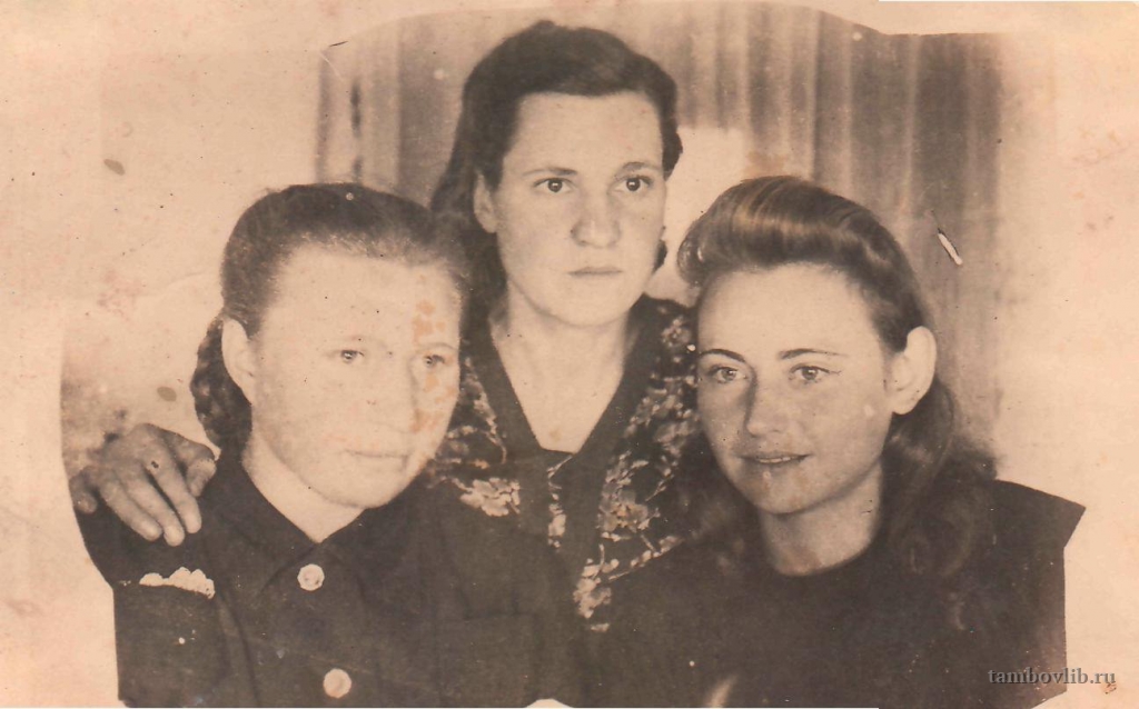 На снимке (слева направо): Кочерыгина Нина Андреевна, Горюнова Нина Ивановна, Никитина (Скорочкина) Антонина Павловна. Фото из семейного альбома Никитиных.1952 Знаменская ЦБС Портрет с. Знаменка Тамбовской области