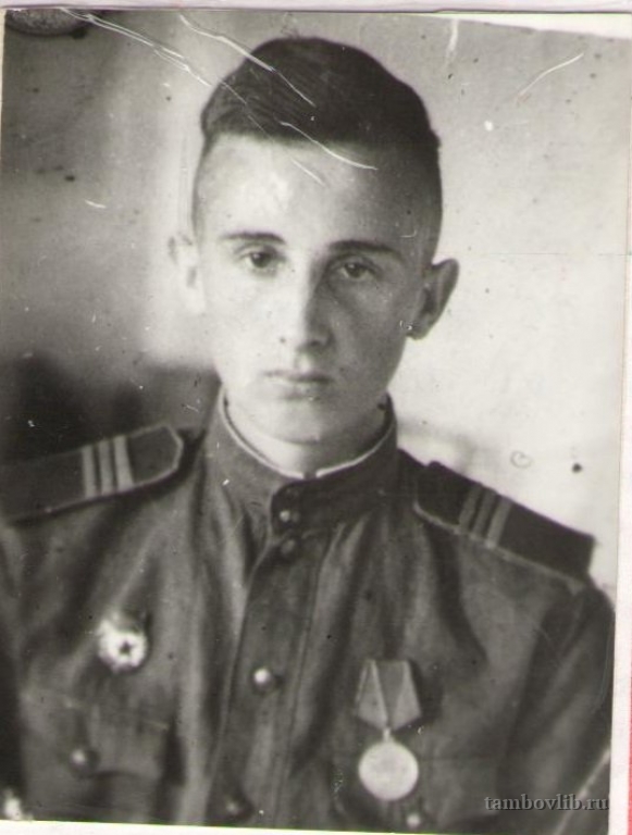 Добровольцем ушел на фронт в сентябре 1941 года. Демобилизован в декабре 1945 года. Награжден орденом Отечественной войны I степени, медалью "За отвагу".1944, май Межпоселенческая центральная библиотека Жердевского района Портрет