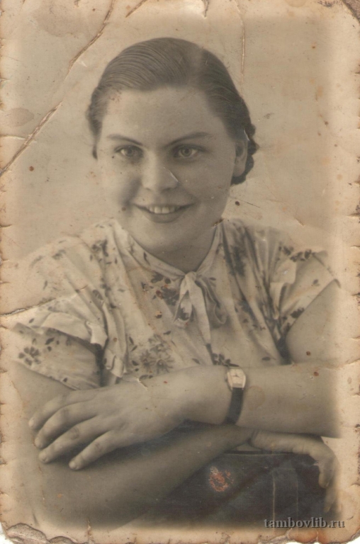 Шмелёва Валентина Михайловна, 1938 г. р., уроженка с. Богданово Ржаксинского района. Была секретарем комсомольской организации колхоза "8 Марта" . Работала счетоводом.1955 Межпоселенческая центральная библиотека Ржаксинского района Портрет