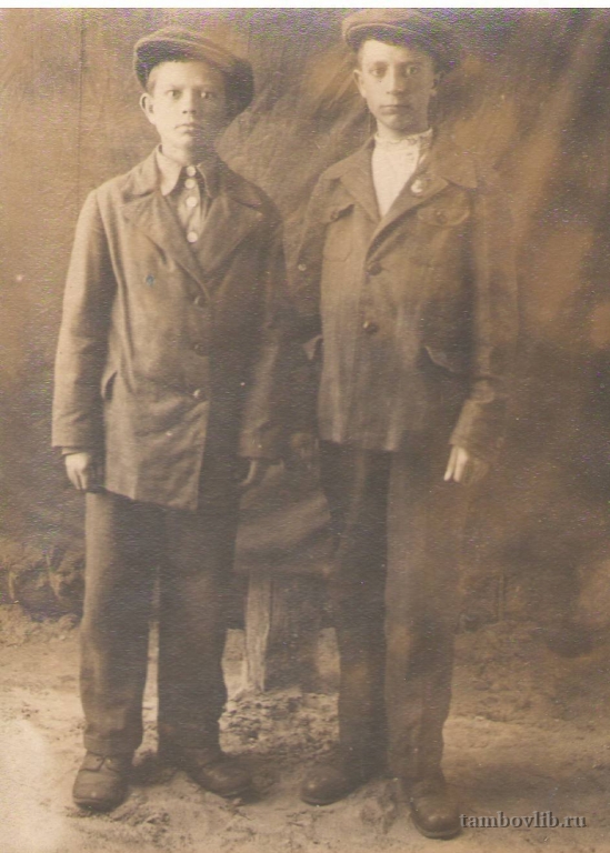 Родился 1924 году с. Мучкап Тамбовской области. Призван в армию в 1944, демобилизован в 1945 году. Рядовой. Рядом стоит Мишин Иван Петрович. Фото предоставил Репин Виктор Васильевич.1939 Центральная библиотека Мучкапского района Семейное
