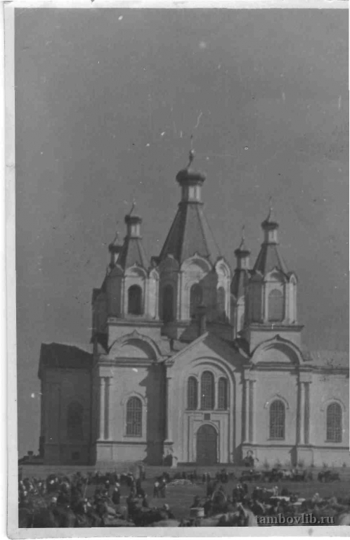 Базарная площадь у храма.1950 Межпоселенческая центральная библиотека Пичаевского района Открытка Пичаево, Тамбовская область, Россия