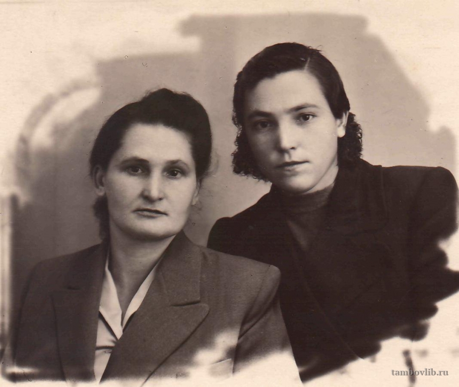 Жабина Ирина Фёдоровна (слева) родилась в 1920 году в селе Никольское Знаменского района Тамбовской области. Призвана в армию в 1943 году. Работала медсестрой в госпитале, сформированном в Тамбове. Демобилизована в 1945 году. После войны пять лет работала в госпитале в Германии, затем вернулась в Знаменку. Работала в районной больнице. Награждена медалью "За победу над Германией в Великой Отечественной войне", Орденом Великой Отечественной войны II степени, другими наградами.1952 Знаменская ЦБС Семейное Тамбов, Тамбовская область, Россия