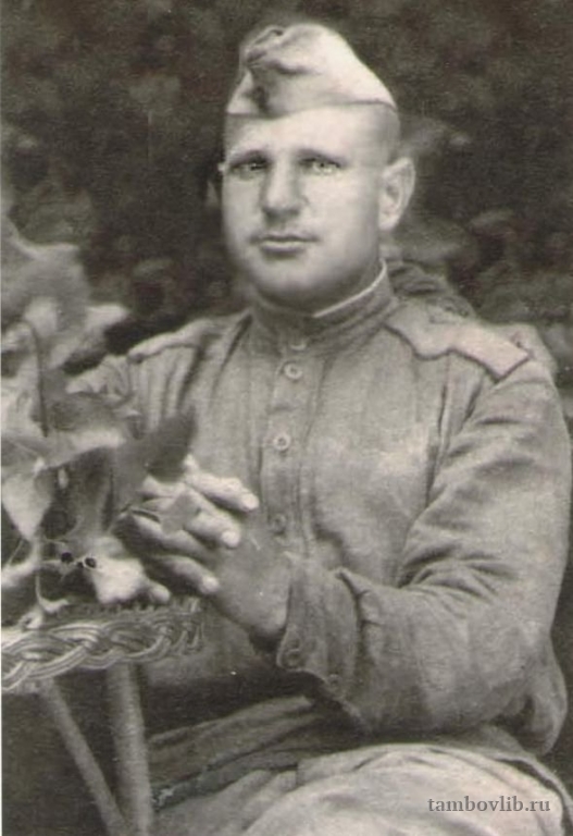 Родился 06.10.1912 в с. Кобяки. Ушел на фронт в 1941, прошел всю войну. После войны вернулся и работал в г. Кирсанов. Умер 08.09.1993 г.1942 Кирсановская городская библиотека Портрет