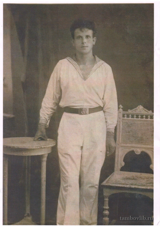 Родился в 1915 г. в р.п. Мордово Мордовского района Тамбовской области. Призван в армию 1941г., демобилизован в 1946 г. Старший матрос. Умер в 1977 г.Мордовская центральная районная библиотека Портрет