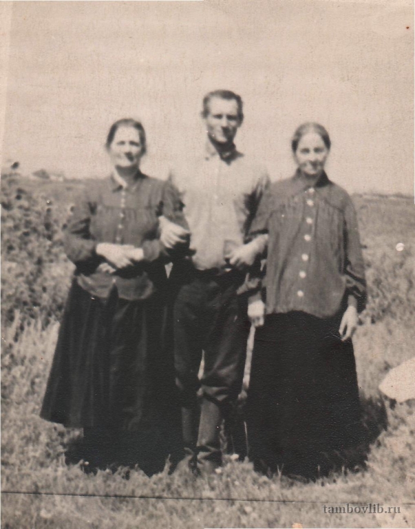 На фото: слева Просина Мария Трофимовна (1899-1970) и её свояченица Просина Анастасия Павловна (1890-1973) с племянником. Из семейного архива Степанова Геннадия Петровича.1952 Знаменская ЦБС Семейное с. Пановы-Кусты Сампурского района Тамбовской области