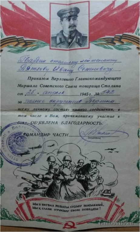 25 апреля 1945 Межпоселенческая центральная библиотека Пичаевского района Документ