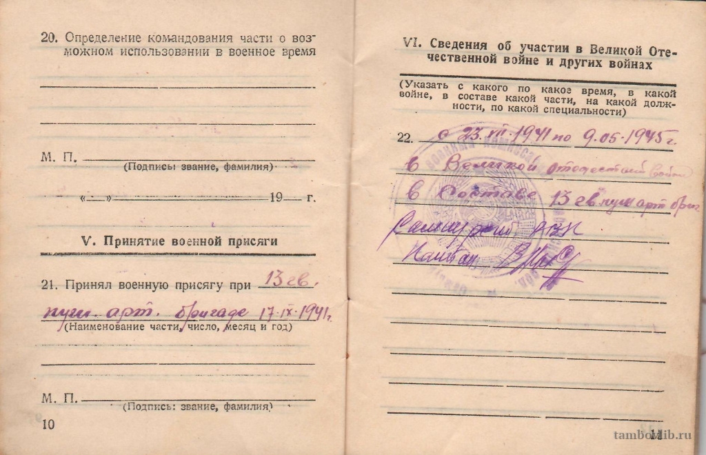 Военный билет Антонова Николая Васильевича