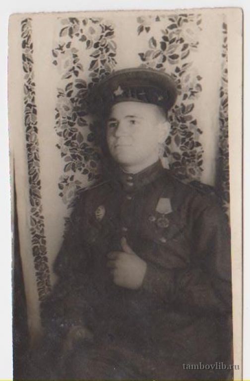 Родился в 1926 г. в с.Лаврово Мордовского района Тамбовской области. Призван в армию в 1943 г., демобилизован в 1949 г. Рядовой, пограничник.Мордовская центральная районная библиотека Портрет