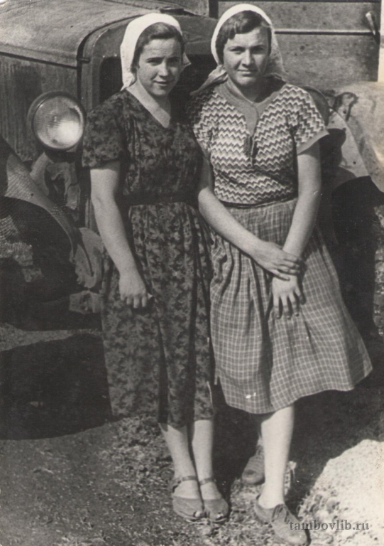 Ефремова Антонина Никитична (справа) с подругой. Фото предоставлено её сыном Ефремовым Владимиром Александровичем.1953 Межпоселенческая центральная библиотека Ржаксинского района Портрет Совхоз Ярославка, Тамбовская область, Россия, 393514