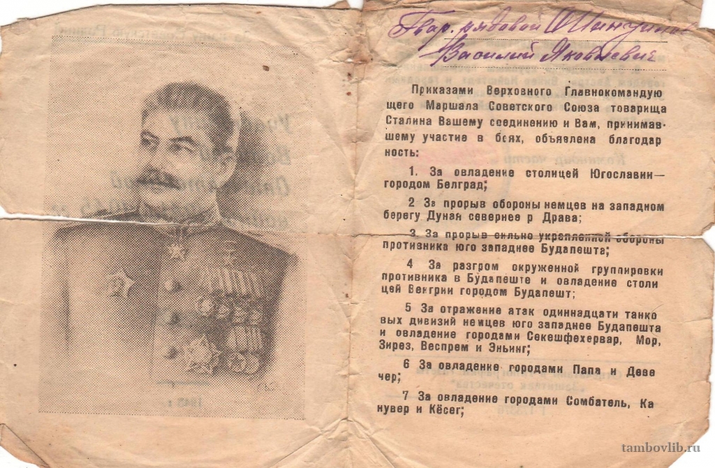 Благодарность участнику Великой Отечественной войны Мануйлову Василию Яковлевичу
