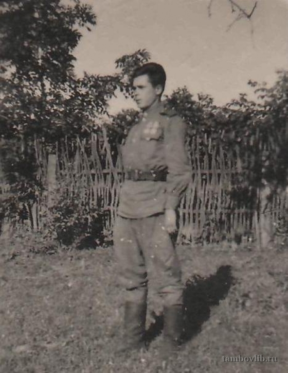 Родился в с. Глебовка Сараевского района Рязанской области 13 июня 1924 года. На фронт был призван в августе 1942 года. Был стрелком, помощником командира взвода, командиром взвода. Дошел до Германии. Был трижды ранен. Имеет награды: Орден Красной Звезды, 2 медали "За отвагу", медаль "За взятие Кёнигсберга", "За победу над Германией в Великой Отечественной войне в 1941-1945 гг." После Победы приехал в р.п.Знаменку Тамбовской области, работал в "Сельхозтехнике" водителем. Скончался 17 марта 1982 года. Фото из семейного архива Кулешова Александра Петровича.21 августа 1944 Знаменская ЦБС Портрет