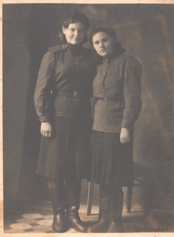 Фотография была сделана на память маме, вместе со своей любимой подругой в армии Верой.Фото из семейного архива,предоставлено дочерью.16 декабря 1943 Межпоселенческая центральная библиотека Сосновского района Портрет