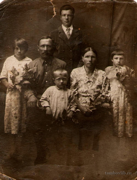 Семья Соболевых из с. Криволучье Инжавинского района. Стоит старший сын Соболев Николай Николаевич - участник Великой Отечественной войны. Пропал без вести в 1943 году. Награжден орденом Красной Звезды.1940 Межпоселенческая центральная библиотека Инжавинского района Семейное