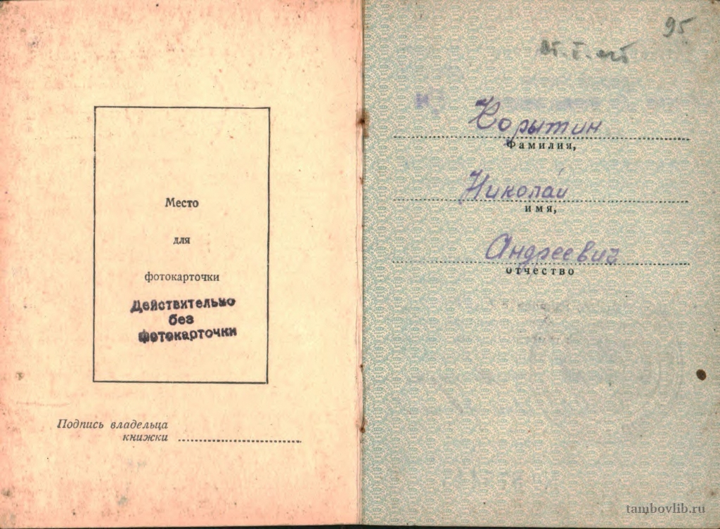 Орденская книжка Корытина Николая Андреевича