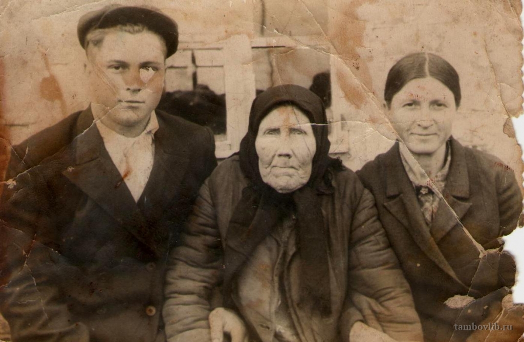 Семьях Шаломовых из с. Николино Инжавинского района. Шаломов Валентин Васильевич с бабушкой Анисьей и матерью Александрой Петровной.Межпоселенческая центральная библиотека Инжавинского района Семейное