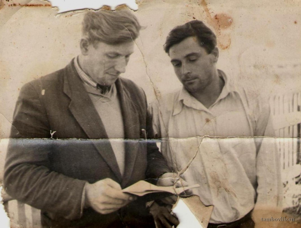 Жители с. Николино Инжавинского района. Шаломов В. В. с председателем колхоза имени Димитрова.1950 Межпоселенческая центральная библиотека Инжавинского района Портрет