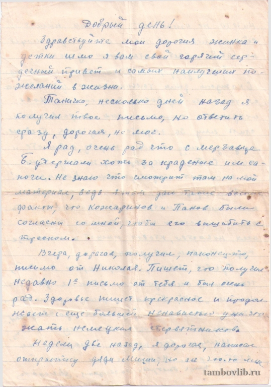 11 мая 1942 Межпоселенческая центральная библиотека Пичаевского района Письмо