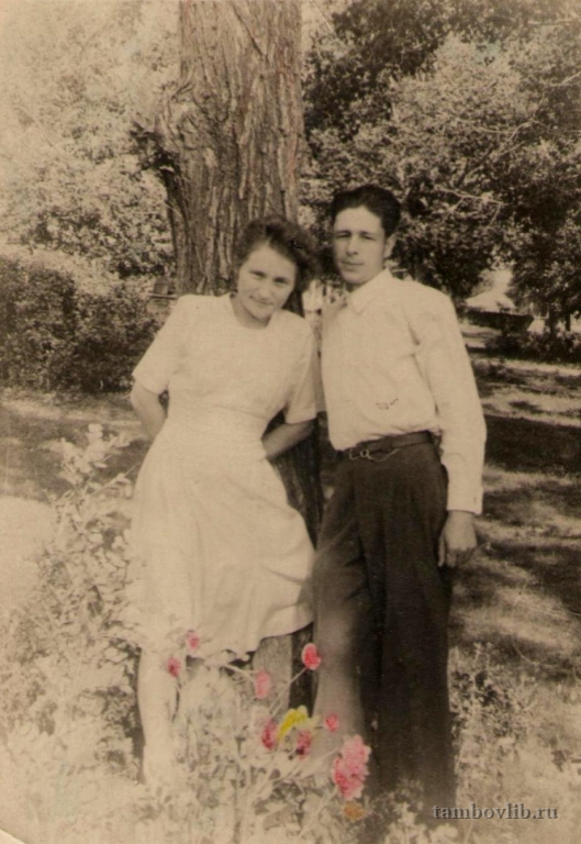 Жители с. Красивка Инжавинского района. Владимир Павлович (1923 - 2005) - участник Великой Отечественной войны. Награжден орденом Красной Звезды, орденом Отечественной войны, медалями. После войны работал главным ветеринарным врачом в с. Красивка. Инна Гордеевна (1925 - 2011) работала учителем Красивской школы. Фотография предоставлена дочерью, жительницей р. п. Инжавино Рязановой Людмилой Владимировной.1946 Межпоселенческая центральная библиотека Инжавинского района Семейное