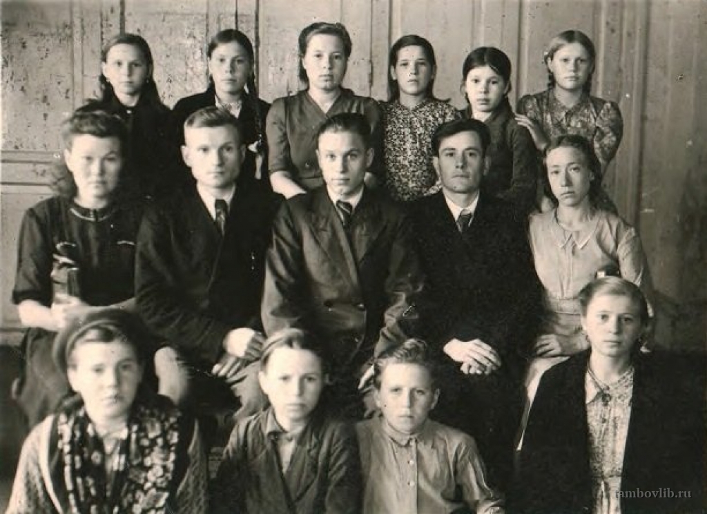 Баранов Валентин Петрович. На фото в среднем ряду третий справа, с учениками 6 класса и учителями Котовской семилетней школы Рассказовского района.